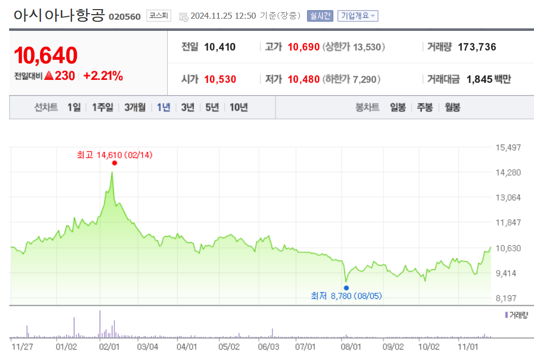 아시아나항공 주가 정보